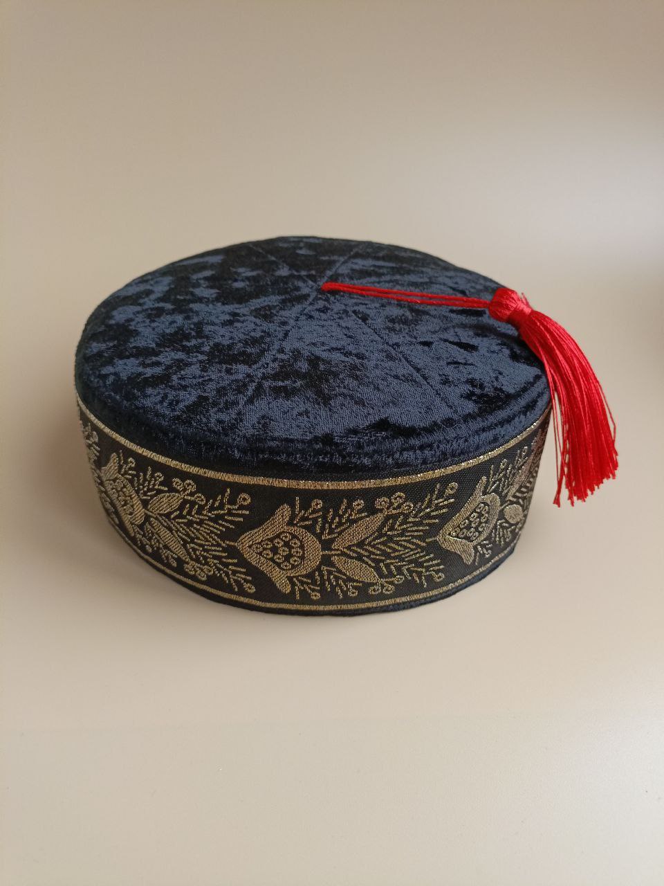 Шапка из фиолетового бархата с бисером