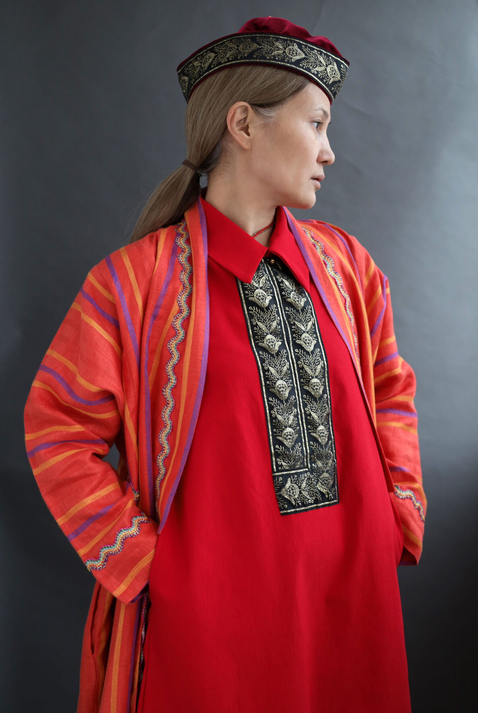 Актуализация— адаптация традиционного калмыцкого кроя, орнамента и материалов к современным трендам.